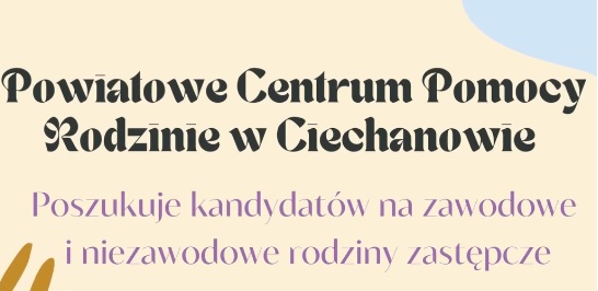 Powiatowe Centrum Pomocy Rodzinie w Ciechanowie poszukuje kandydatów na zawodowe i niezawodowe rodziny zastępcze.